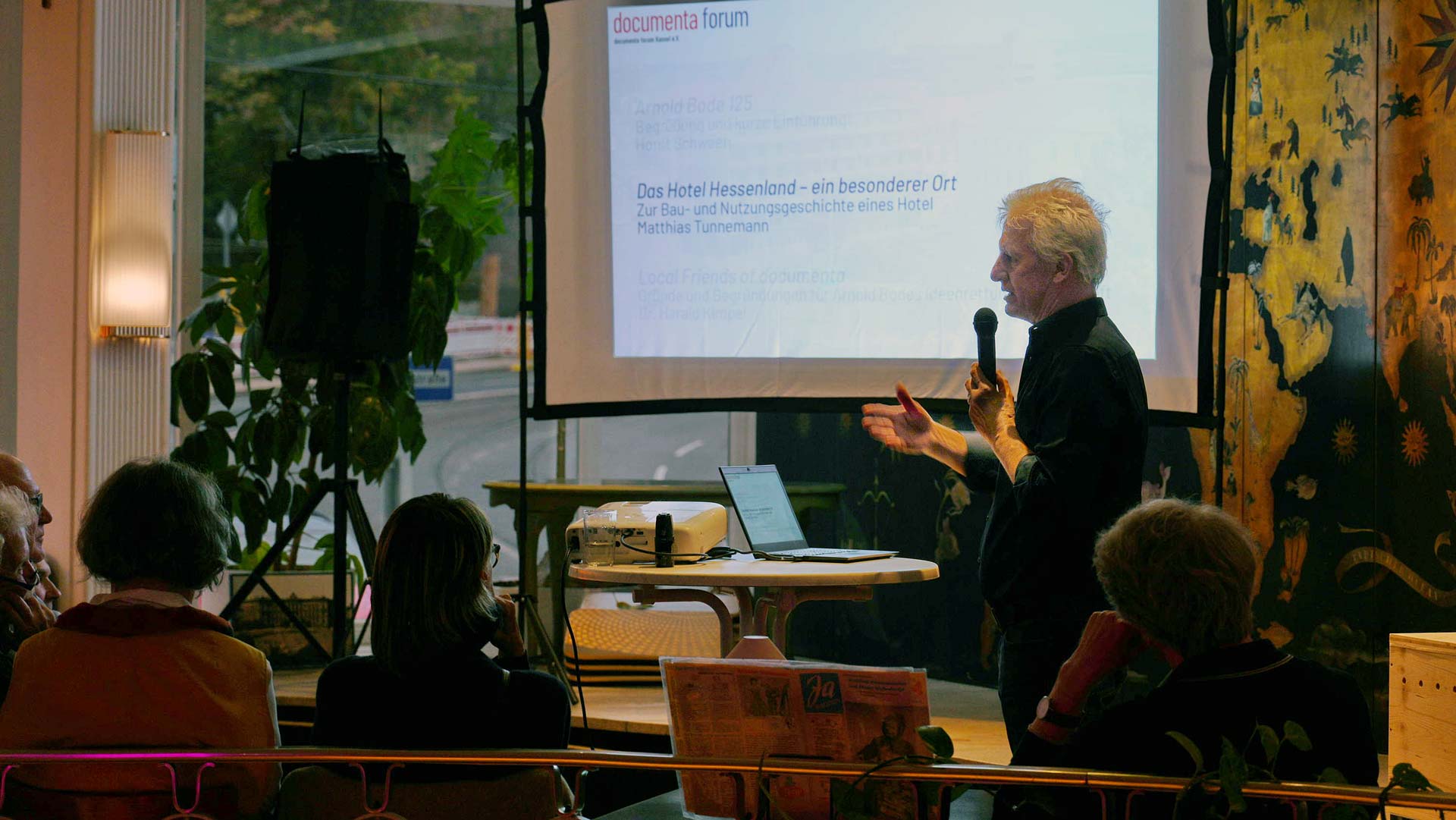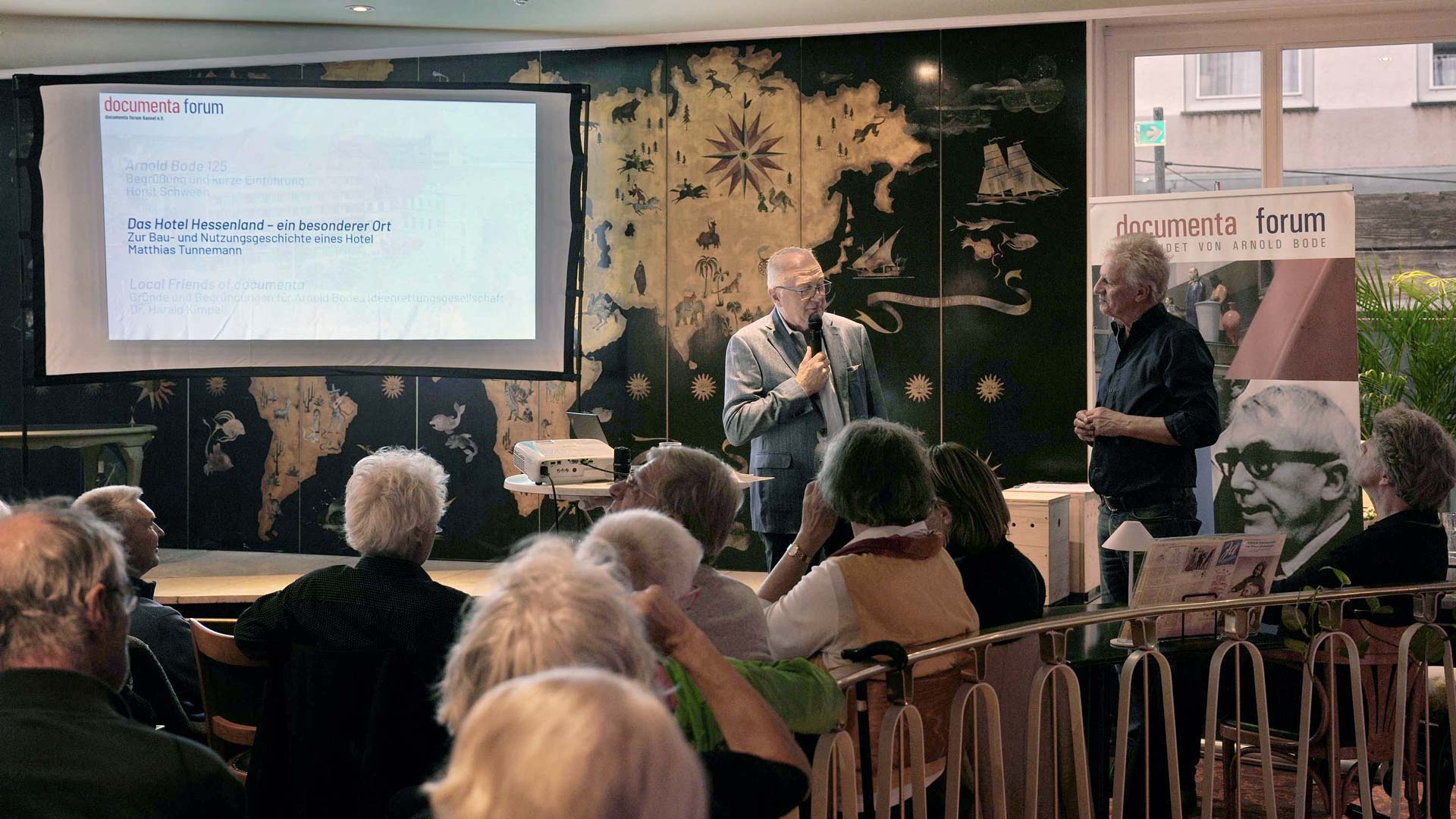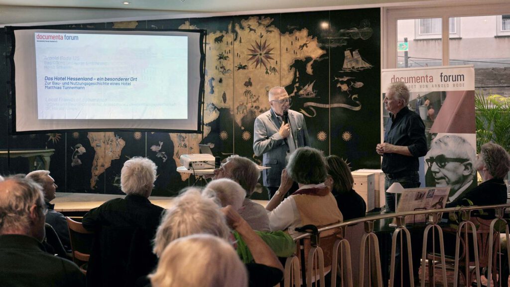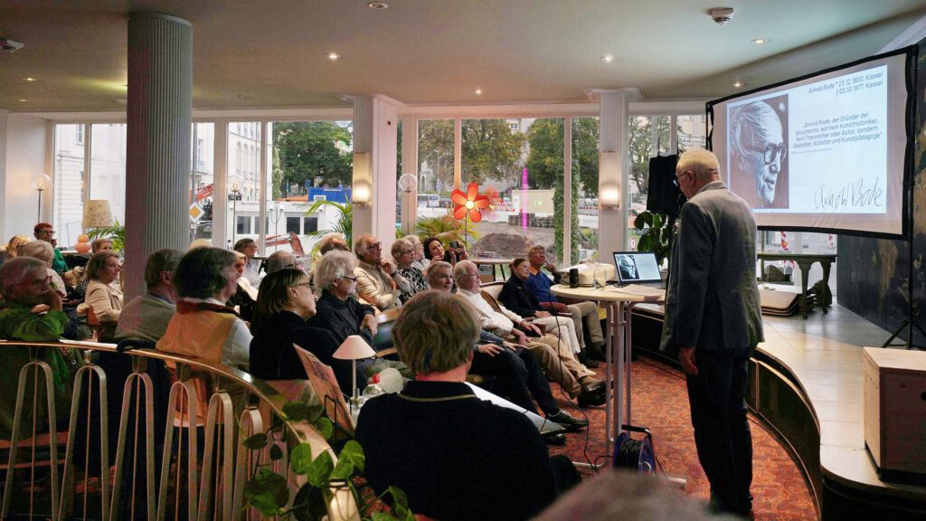 Anlässlich des 125. Geburtstags von Arnold Bode am 23. Dezember 2025 lud das documenta forum am Dienstag, 9. September 2025, in das Hotel Hessenland ein, dem Ort, an dem Bode und sein Freundeskreis am 16. Juni 1972 das documenta forum gründeten.