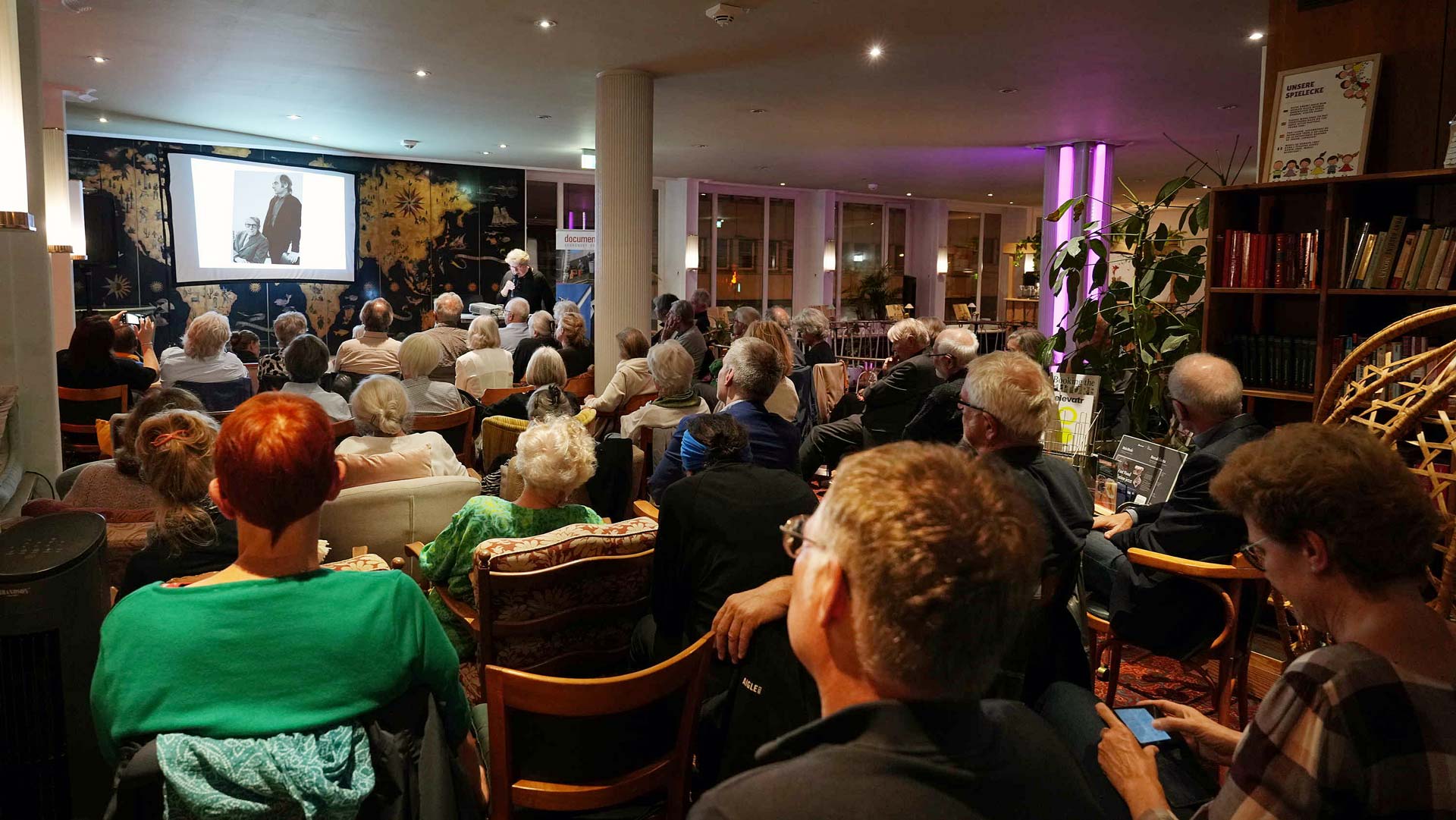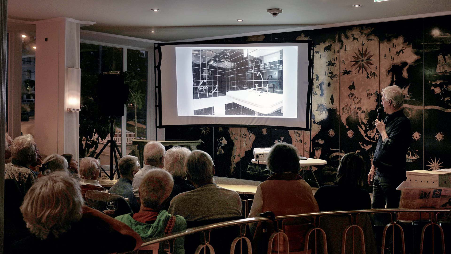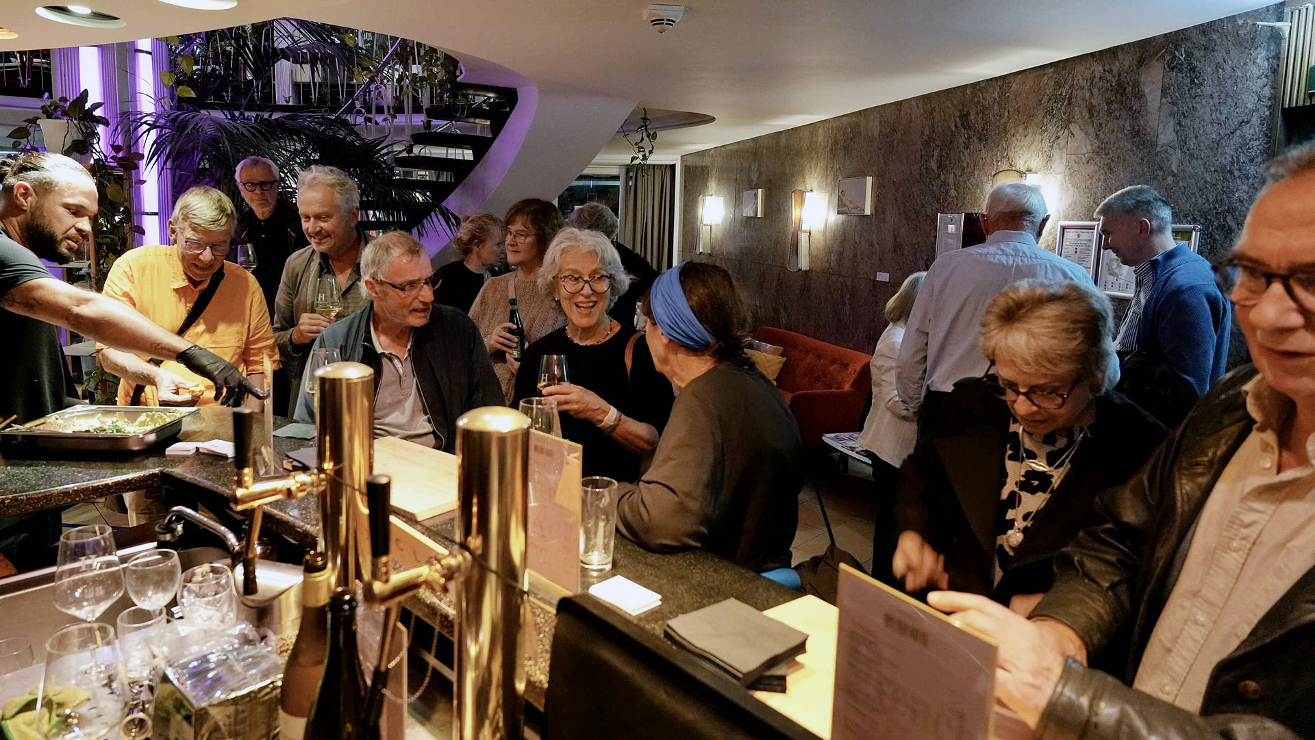 Die für die Besucher anregende und informative Veranstaltung klang bei einem Glas Wein o. Ä. an der Bar im charmanten Ambiente der 60er-Jahre im Erdgeschoss aus.