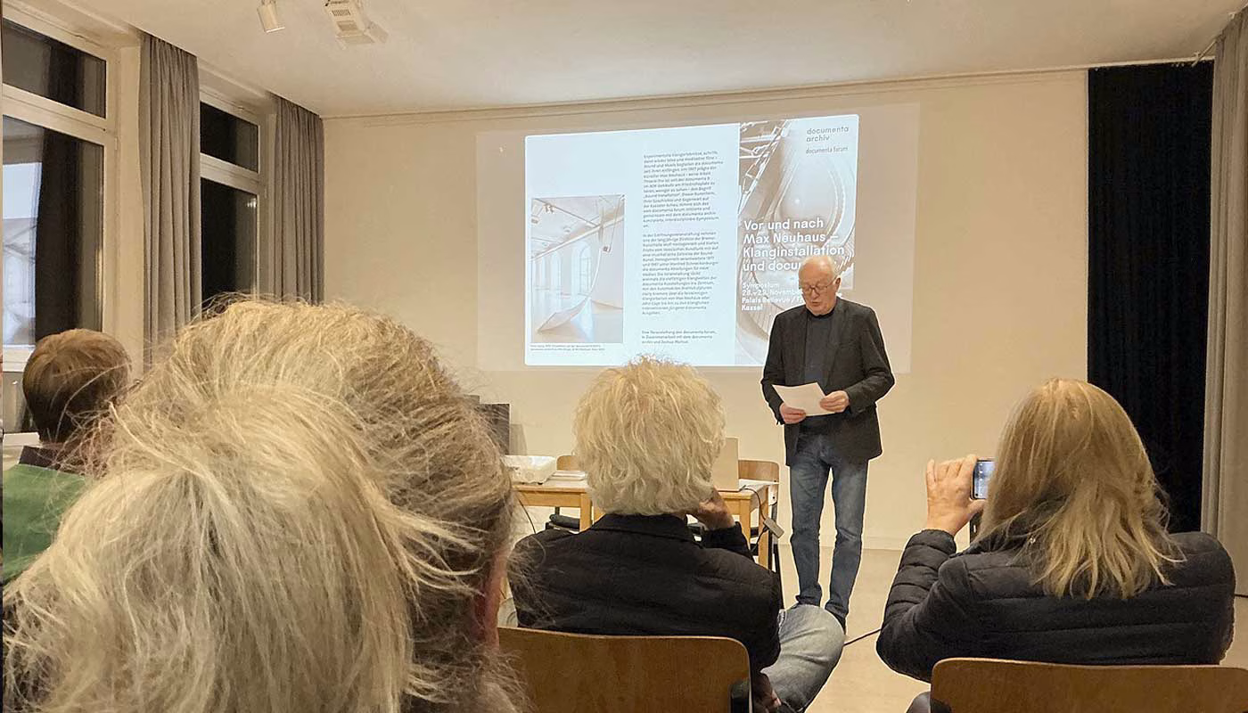 Rückblick und Ausblick standen im Mittelpunkt des Jour fixe am Montag, 27. Oktober. Joshua Weitzel, Mitglied des documenta forums (df), stellte das von ihm initiierte und kuratierte Programm des Symposiums „Vor und nach Max Neuhaus – Klanginstallation und documenta“ vor.