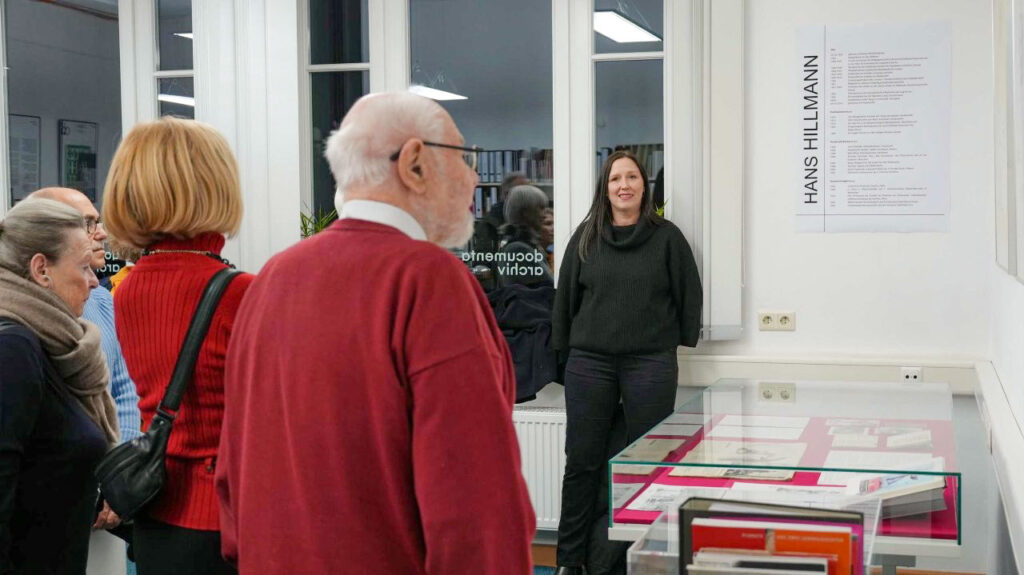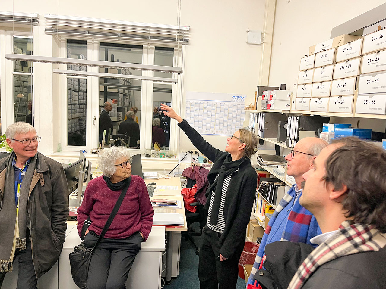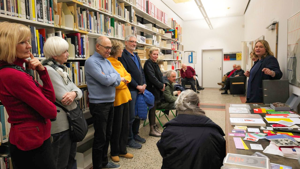 Dieser Rückblick auf die frühen Jahre war Teil einer Führung, zu der die heutige Archivdirektorin Dr. Birgitta Coers die Mitglieder des documenta forums eingeladen hatte. Mit rund 40 Interessierten wurde die übersichtliche Raumsituation fast gesprengt. Neben Dr. Coers brachte auch die stellvertretende Leiterin, Saskia Mattern, ihre Zeit und ihr Wissen an diesem inhaltsreichen Abend ein.